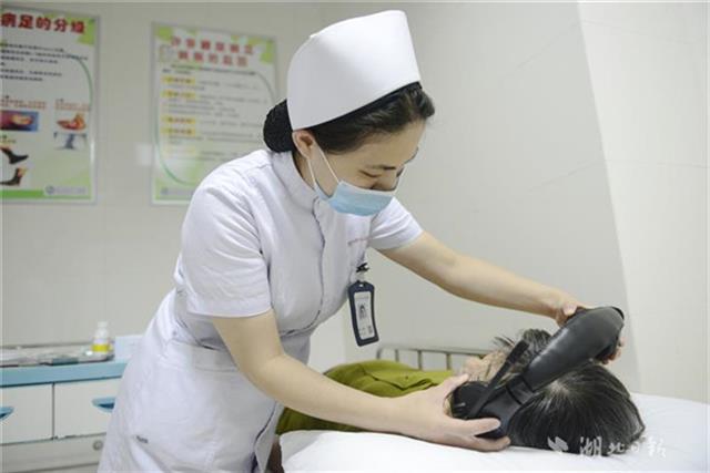 6月,刘阿姨因病情实在扛不住了,只好来到医院换药。这次,当刘阿姨躺在治疗床上后,护士并没有马上开始换药,而是给她戴上耳机,询问她喜欢听什么音乐或歌曲,在选好她想听的音乐后,护士才开始对病足进行换药治疗。整个治疗过程中,刘阿姨虽然还是会感到足部的疼痛,但处于一种非常放松的状态,心情比之前平和了许多。这种通过音乐减压的方式是护士们根据日常护理经验及查阅音乐治疗文献资料后想出的办法。一个月的试行,收到许多糖尿病足患者的好评。